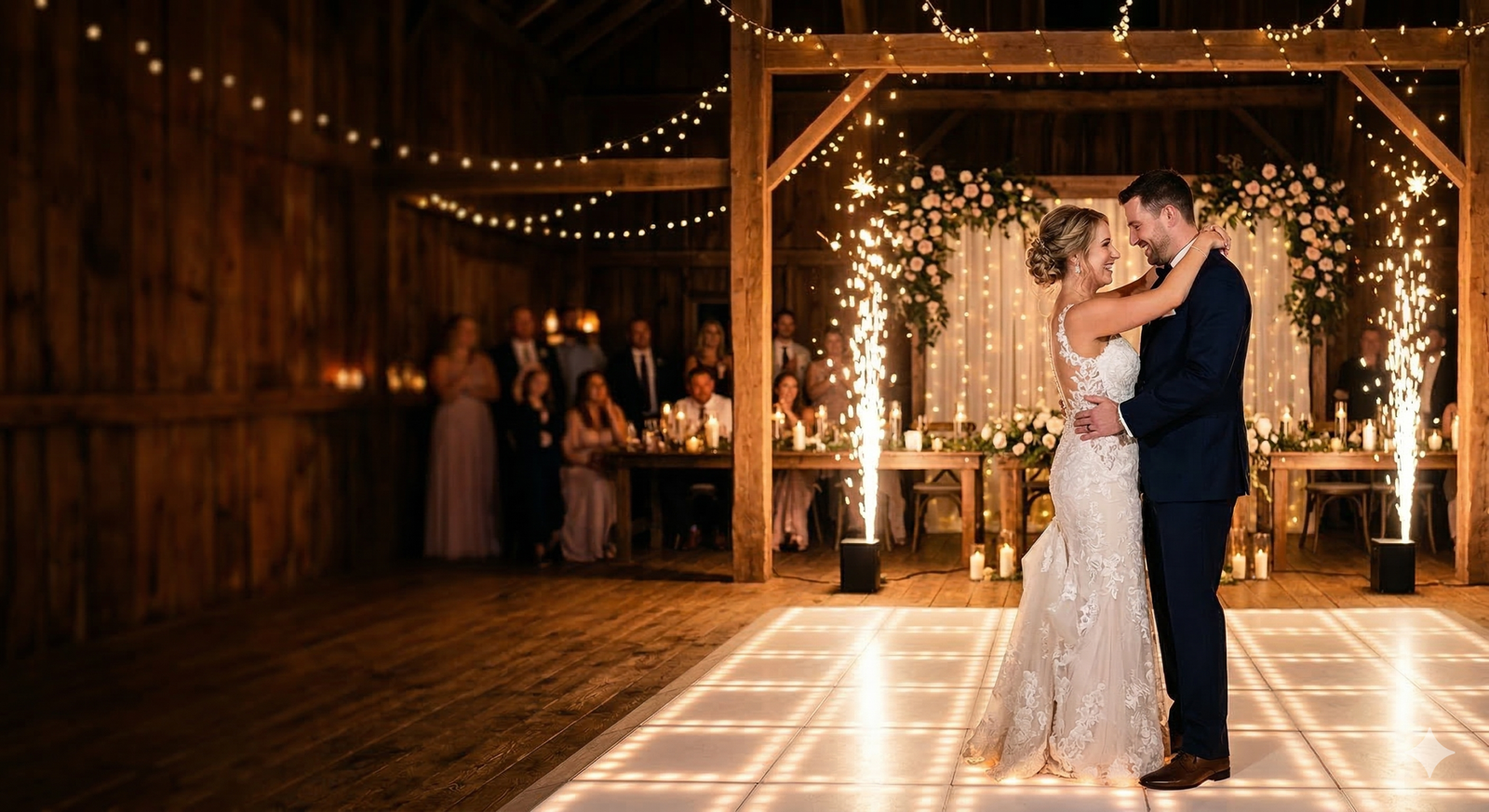 Premium Hochzeits-Entertainment aus einer Hand – inklusive professionellem DJ, Magic Mirror Fotobox, individuell gestaltbarer LED Tanzfläche und XXL LED Wand. Perfekt für unvergessliche Hochzeiten, damit ihr euch um nichts kümmern müsst.