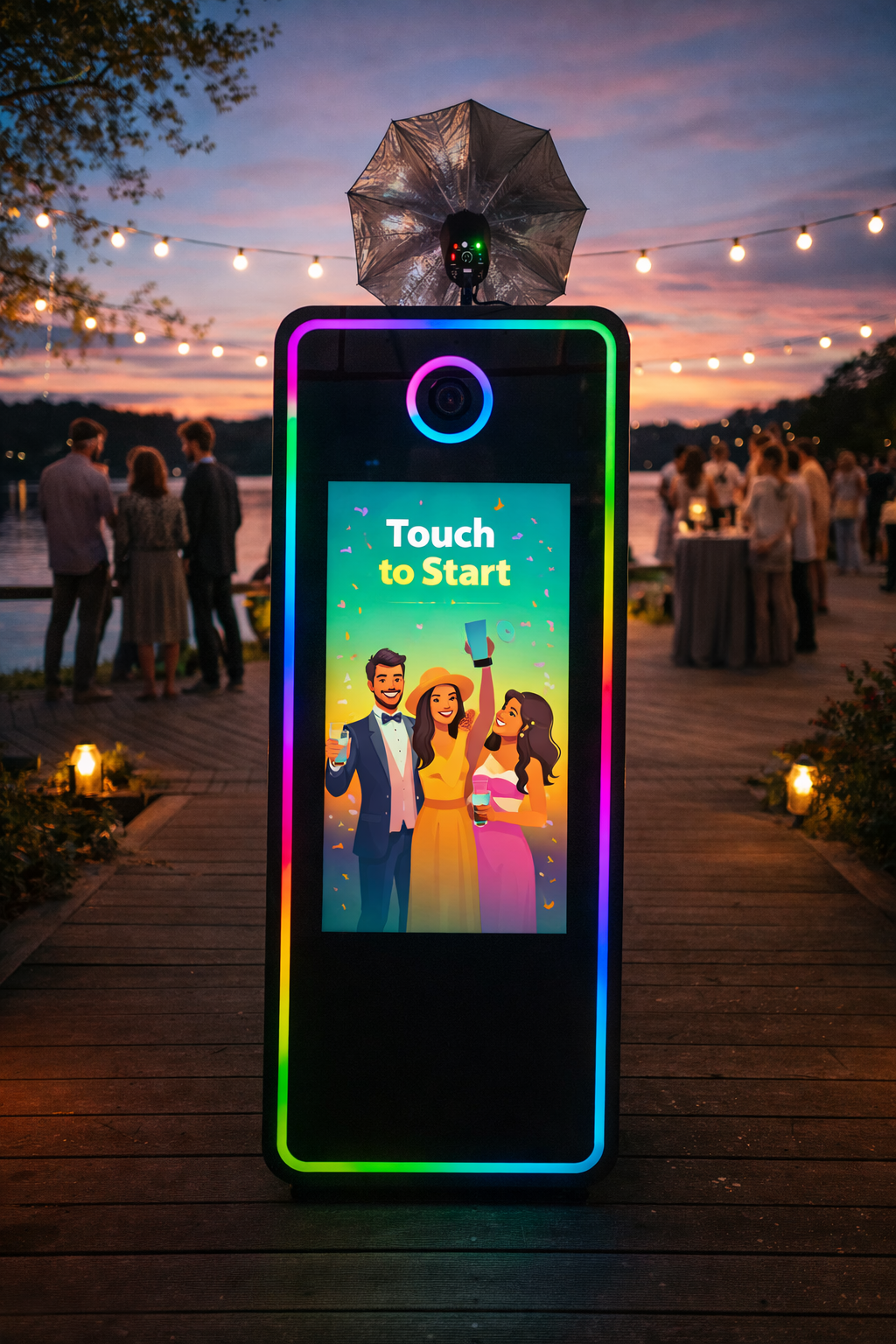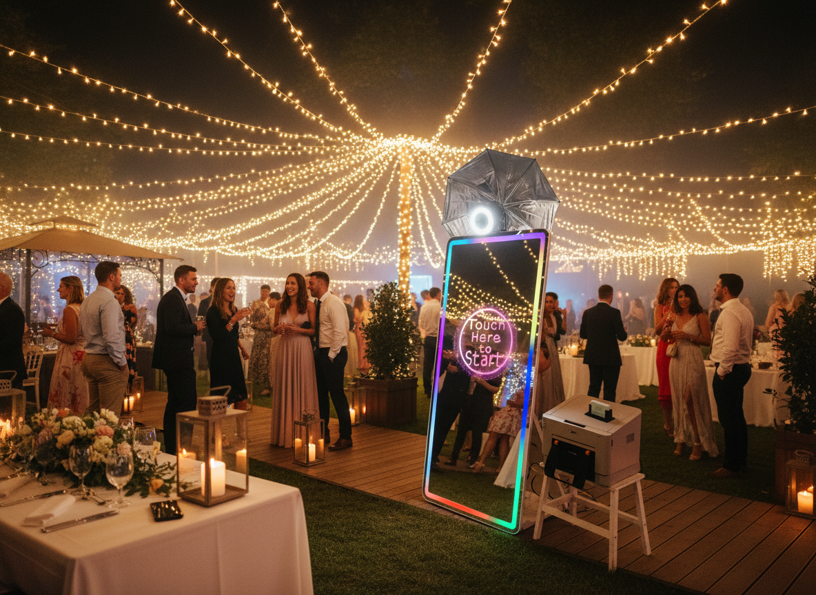 Stylisch, modern, LED-beleuchtet – der Photobooth Vogue ist die perfekte Ergänzung für Hochzeiten und Events.